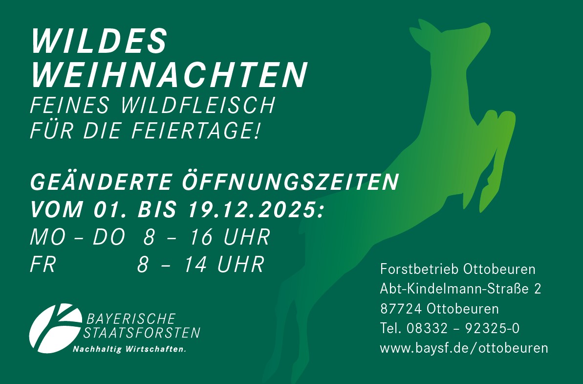 Wildbretverkauf vor Weihnachten 01.12. bis 19.12. 2025